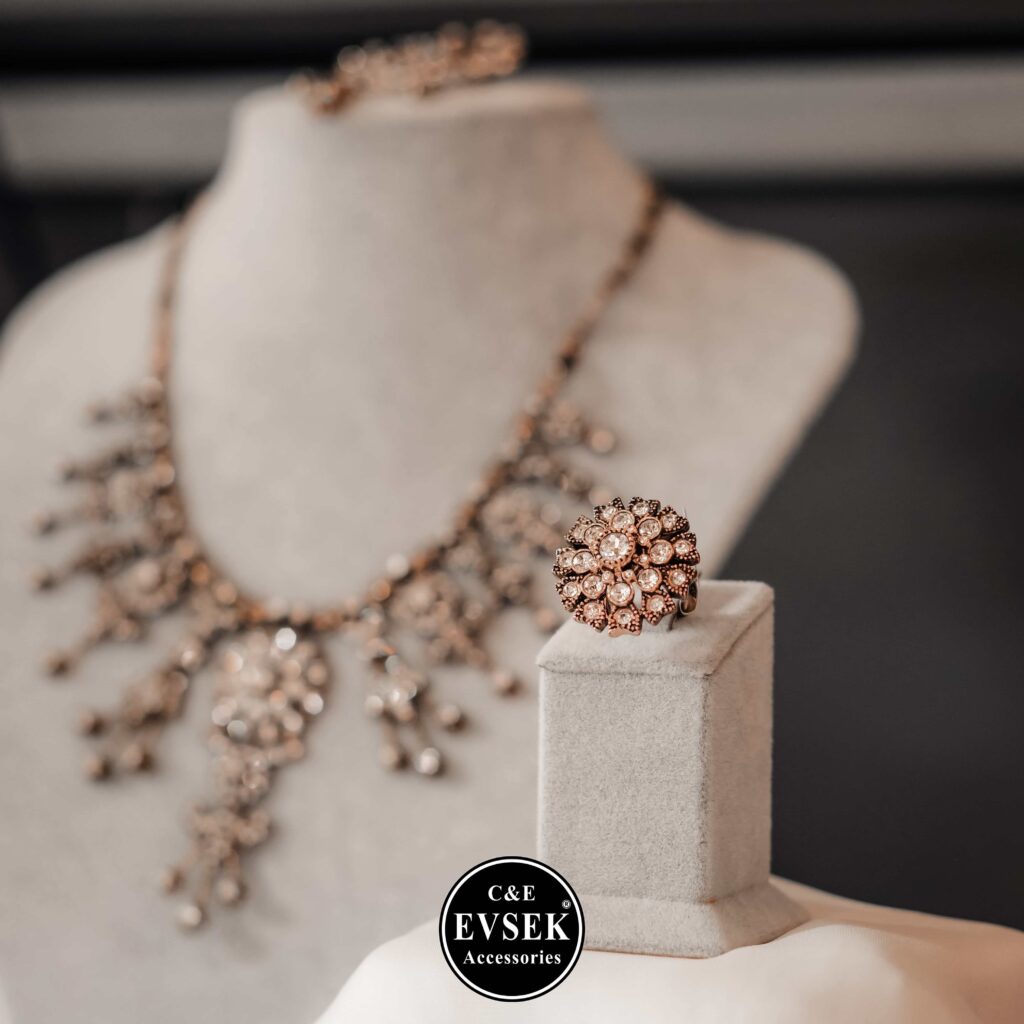 Evsek Accessories, zarafeti ve şıklığı bir araya getiren özgün takı tasarımlarıyla takı dünyasında fark yaratan bir markadır. Mücevherat sektöründe uzun yıllara dayanan deneyimimiz ve tutkumuzla, müşterilerimize en kaliteli ve şık takıları sunmayı amaçlıyoruz.
